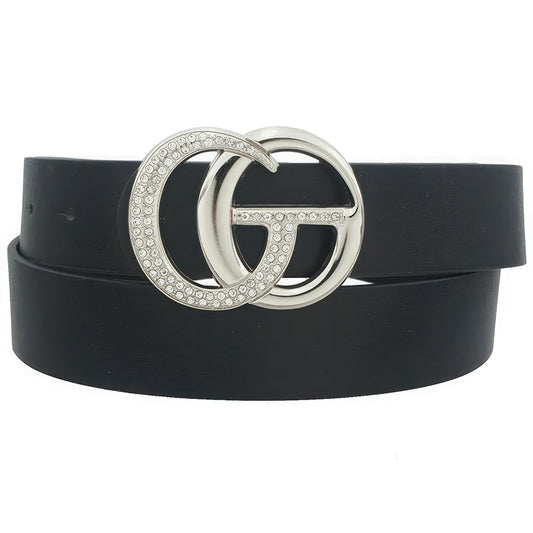 Rhinestone Outlined Cg Buckle Elastic Belt