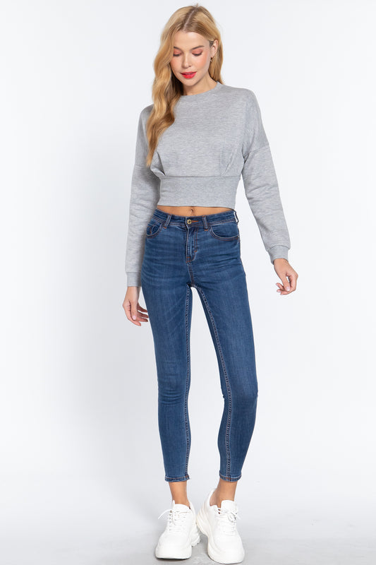 Overwrap Front Button Detail Long Sleeve Knit Top