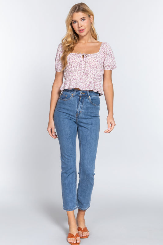 Smocking Bust With Self Tie Straps Sleeveless Waffle Top