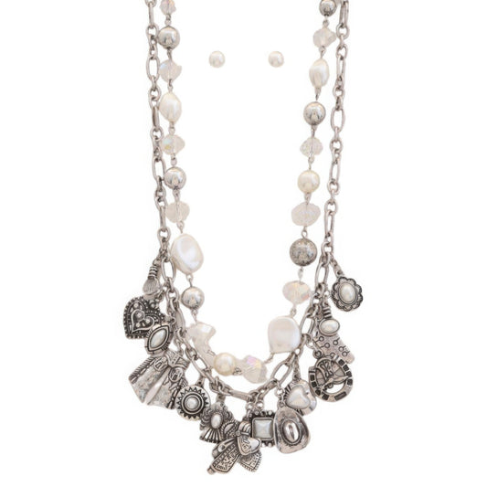 Clover Rhinestone Ring Charm Gold Dipped Necklace